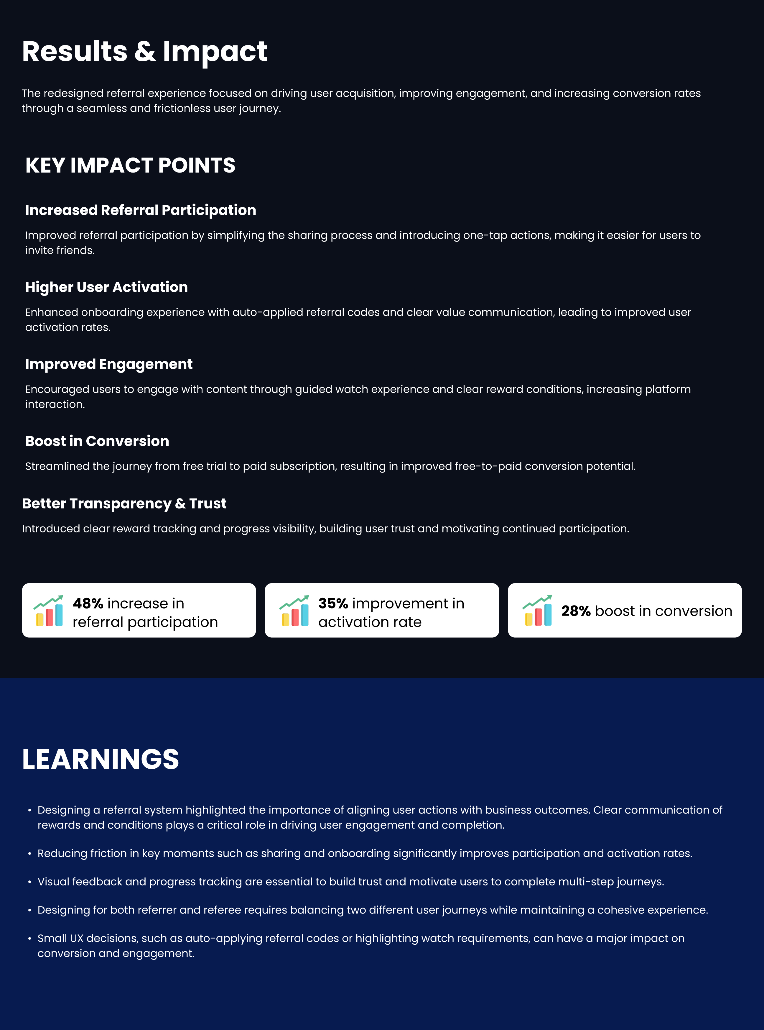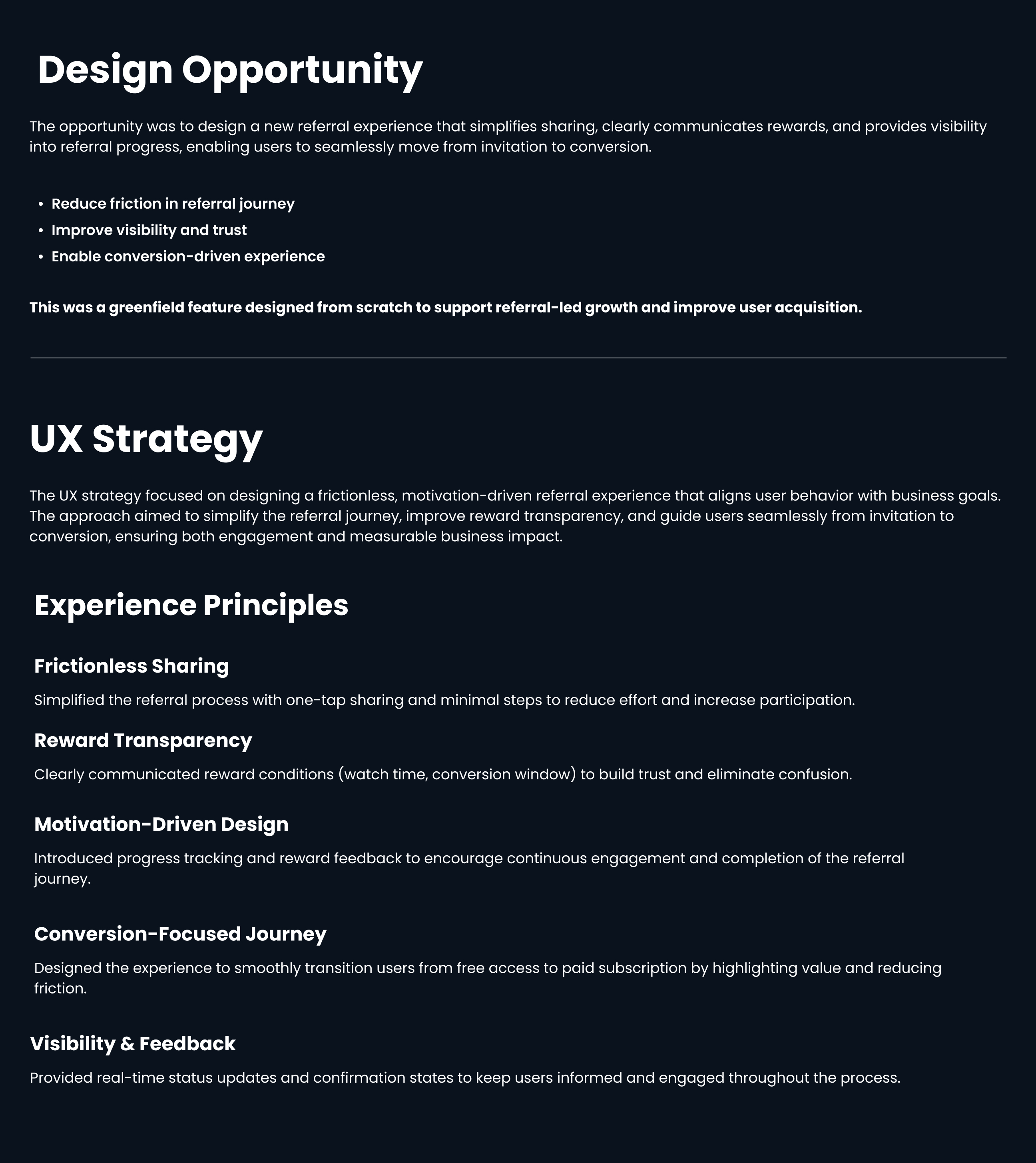 A seamless referral experience designed to simplify sharing, improve reward clarity, and increase user engagement.